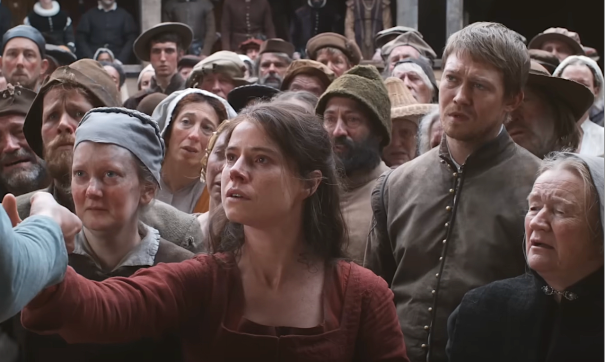 Jessie Buckley is Agnes (which Hathaway was sometimes referred to as), a young woman that local rumor suggests is the daughter of a forest witch but was probably just a woman who knew more than one use for rosemary. Agnes meets Will, a new tutor at the school. Will is instantly ensorcelled by Agnes and the two are making out in secret until Agnes’ pregnancy forces them to reveal their relationship to their families. Despite neither family being Wignes shippers, they are wed and Agnes gives birth to Susanna. Prone to visions, Agnes always saw herself with two children so she’s elated when she’s pregnant again a couple years later, even though Will spends most of his time in London prepping to become history’s greatest writer. Surprisingly, Agnes gives birth to twins, first is son Hamnet, and then Judith. At first, Judith appears stillborn, but Agnes saves her.